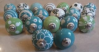 PUSHPACRAFTS 20 grün & weiß creme Keramik Türknauf, Keramik Schrank Griff zieht Schublade Abzieher Knopf