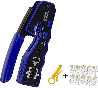 ZYL-YL Crimpzange für RJ45, All-in-One Abisolierzange, Crimpzange für RJ45, Cat6, Cat5, Cat5E, Pass-Thru Steckverbinder mit 10 Stück Cat6 Enden und 1 Stück Abisolierzange Werkzeugclip.