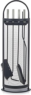 Kaminbesteck Schwarz 5 teilige Kamingarnitur mit Besen Schaufel Schürhaken Zange Ständer mit Sichtschutz Schwarz Kaminwerkzeug, Kamingarnitur mit Edelstahlgriffen