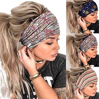 Sethexy Breit Boho Elastisch Stirnbänder Verknotet Haarband 3St Kreuz und quer Kopfwickel Wicking Kopftuch Yoga Kopfbedeckung Laufen Stirnband für Frauen und Mädchen
