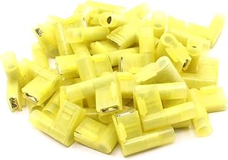 100 Stück Flachsteckhülsen weiblich 90 Grad gelb 4-6 mm² Steckbreite 6,3mm Vollisolierte Steckverbinder Kabelsteckschuhe Kabelschuhe Verbinder aus Messing verzinnt