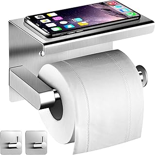 Auxmir Toilettenpapierhalter mit Ablage ohne Bohren, Klopapierhalter Edelstahl Papierhalter Selbstklebend oder Wandmontage für Badezimmer Toilette Küche, Rostfrei, Silber