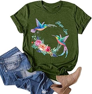 T Shirt Damen Kurzarm Oberteile Sommer Oversize Elegant Rundhals Brief Blume Vogel Tier Drucken lose Mode Blusen Basic Shirts Pullover Sweatshirt Teenager Mädchen Lässige Hemd Tunika Sport Tops